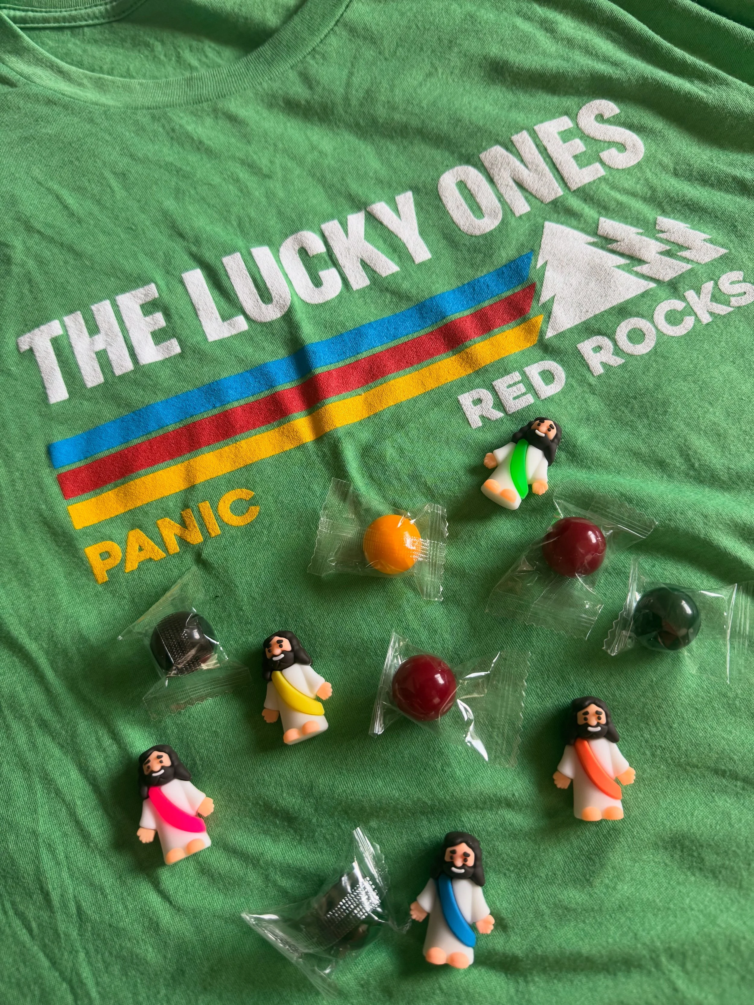 Fast forward a year later, and they’re traveling across the country, meeting up with Bill and Julie—Colorado-based kindred spirits. They’re seeing shows together, dancing wildly, dressing in loud, joyful outfits, and handing out free stickers and little mementos to strangers at concerts.